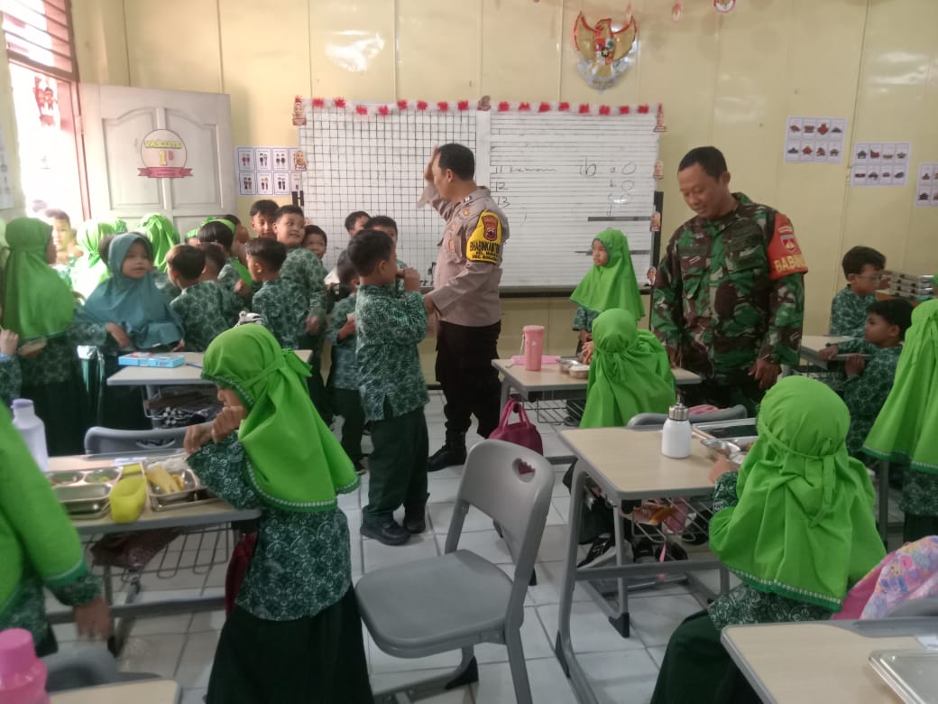 Surakarta – Babinsa Kelurahan Nusukan, Koramil 02/Banjarsari, Kodim 0735/Surakarta Serka Supadmo bersama dengan Bhabinkamtibmas Kelurahan Nusukan Aiptu Mujiono melaksanakan pendampingan dan pemantauan pendistribusian Makan Bergizi Gratis (MBG) bertempat di SD Muhammadiyah 3 Nusukan Jalan Singasari Utama Kelurahan Nusukan Kecamatan Banjarsari, Selasa (28/10/2025).