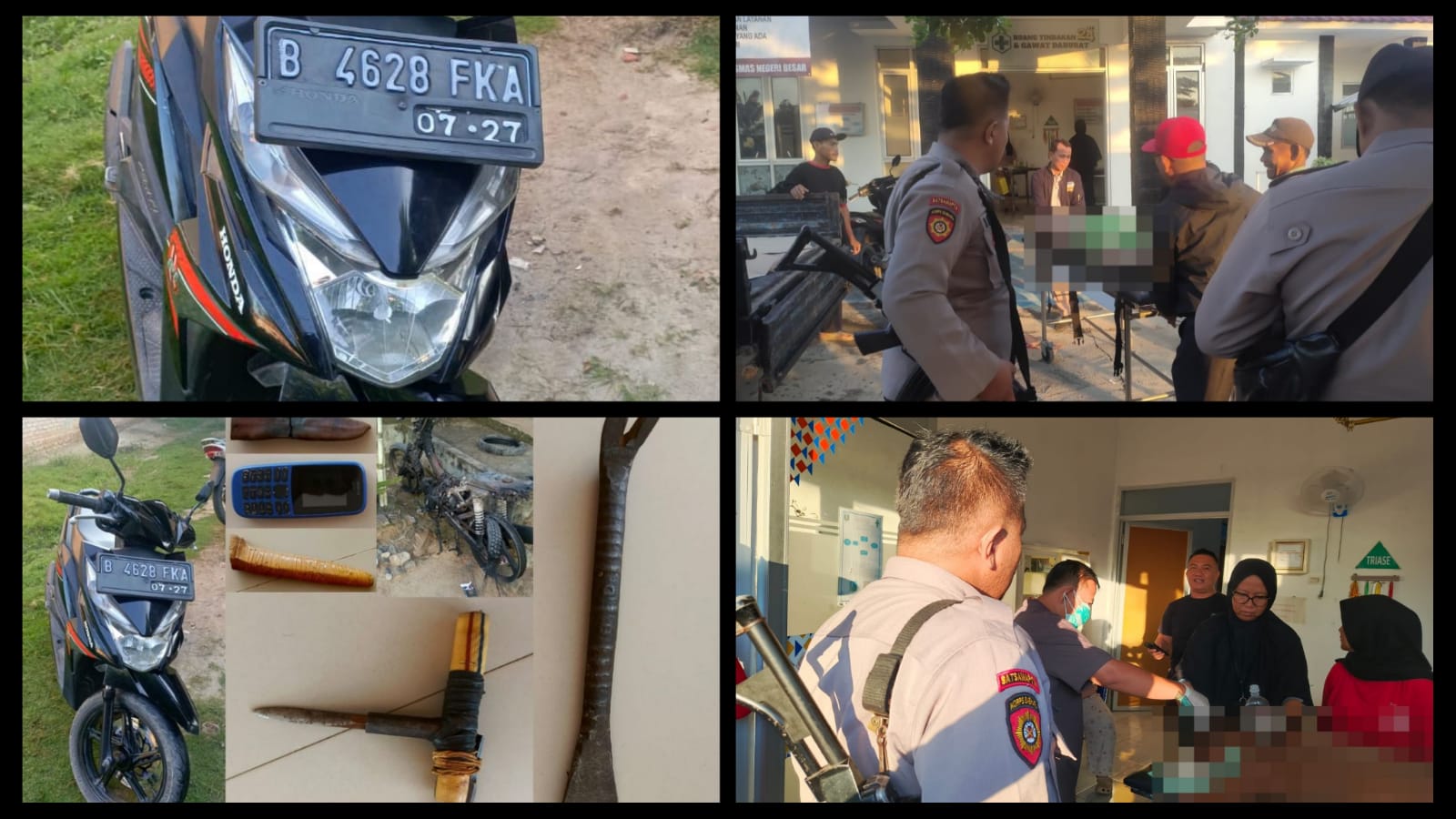 Selain itu, kami juga mengamankan barang bukti sepeda motor honda beat warna Hitam No. Pol. B 4628 FKA milik korban, Seepda motor honda Revo yang sudah terbakar milik pelaku, HP nokia warna biru milik pelaku, kunci letter T, sarung pisau dan golok, serta linggis.
