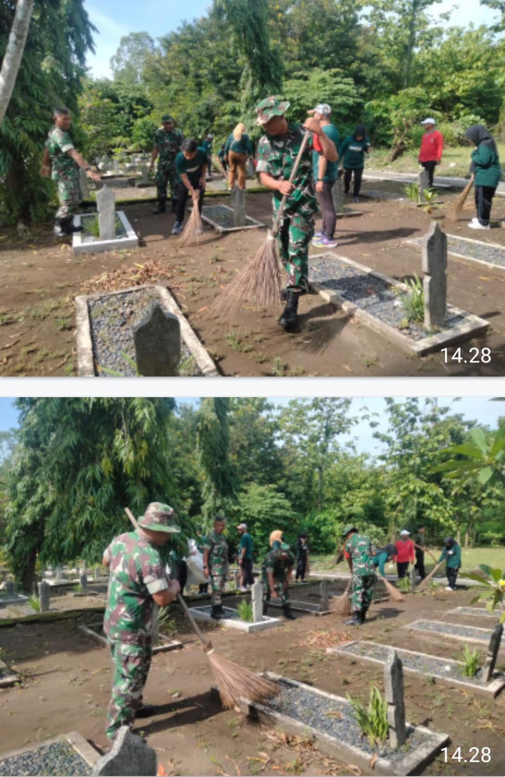 Surakarta – Babinsa Kelurahan Pucangsawit Koramil 04/ Jebres kodim 0735/ Surakarta Serda Tarto bersama Anggota kodim 0735/ Surakarta bersama dinas sosial kota Surakarta dan intansi terkait melaksanakan kegiatan kerja bakti dalam rangka memperingati Hari Pahlawan di TMP Kusuma Bakti Jurug yang di pimpin kepala dinas sosial Drs.Hery Mulyono M.M bertempat di komplek Taman makam Kusuma bakti Surakarta jl Ir Juanda Kelurahan Pucangsawit Kecamatan Jebres, Jumat (07/11/2025)
