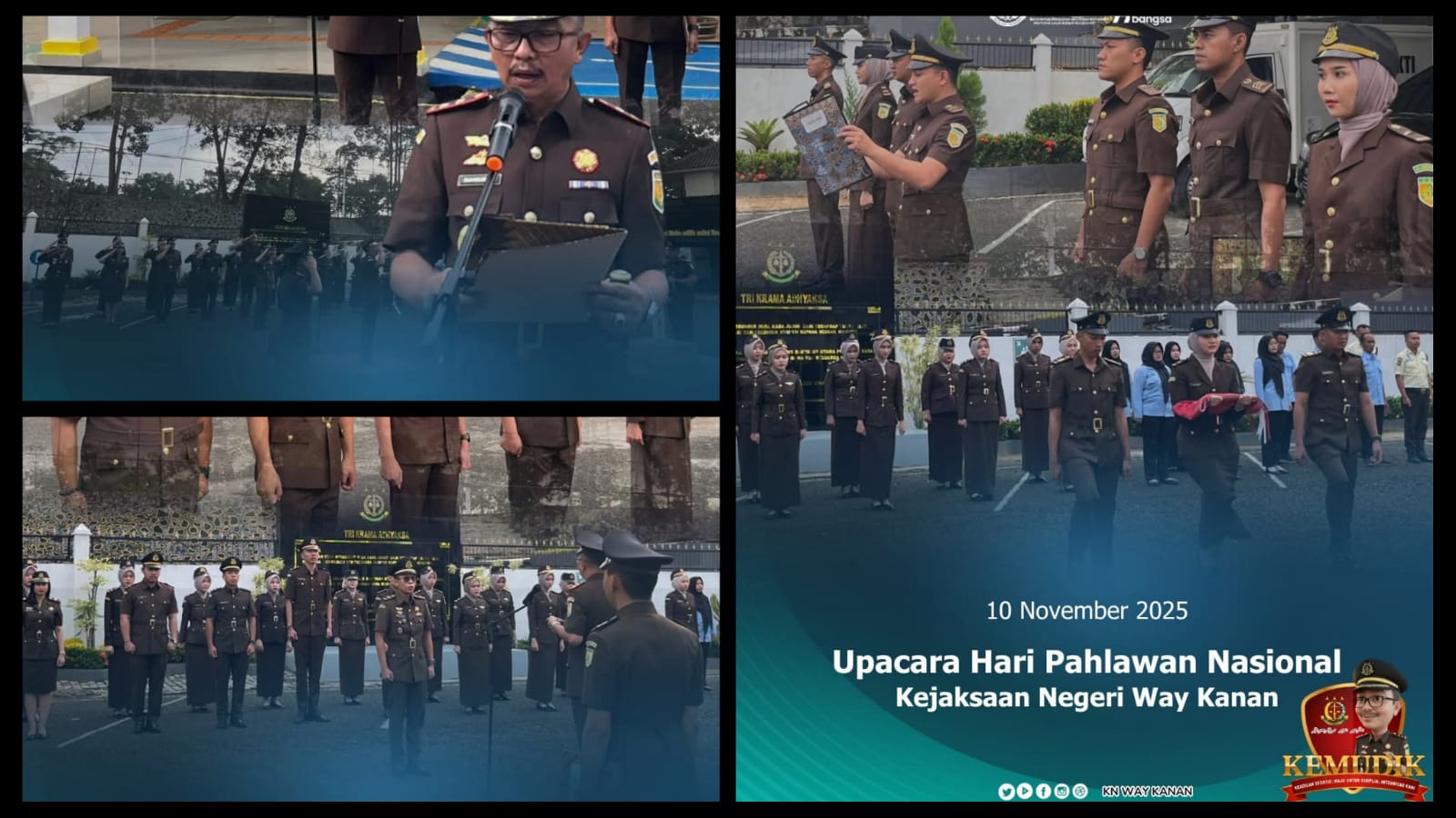 Upacara diselenggarakan di Halaman Kantor Kejaksaan Negeri Way Kanan dan berjalan dengan khidmat sebagai bentuk penghormatan dan penghargaan atas jasa para pahlawan yang telah berjuang demi kemerdekaan dan kedaulatan bangsa Indonesia.(Rahmanglobal)