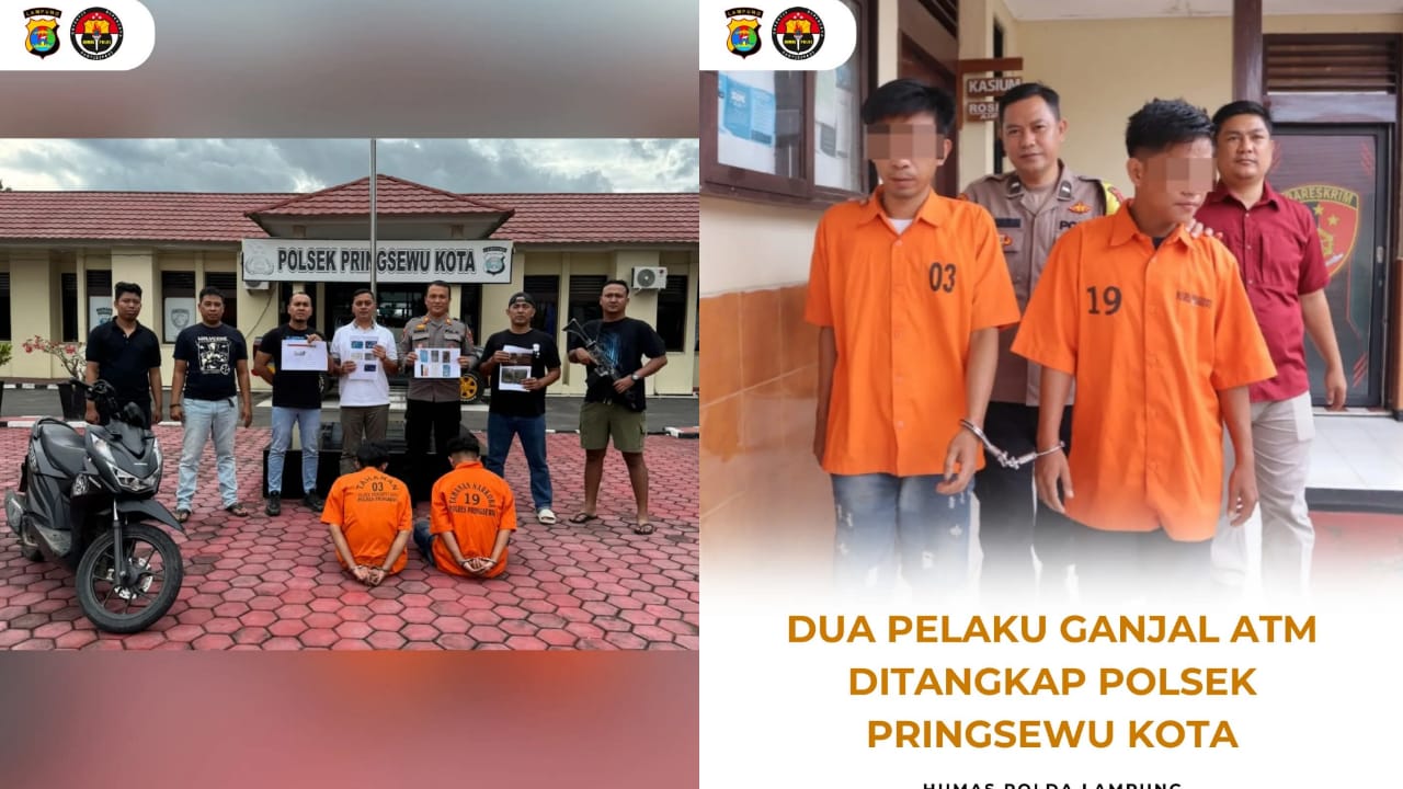 Polres Pringsewu melalui Polsek Pringsewu Kota menangkap dua pelaku pencurian dengan modus ganjal mesin ATM, yakni A (30) dan HK (22), warga Wonosobo, Tanggamus.