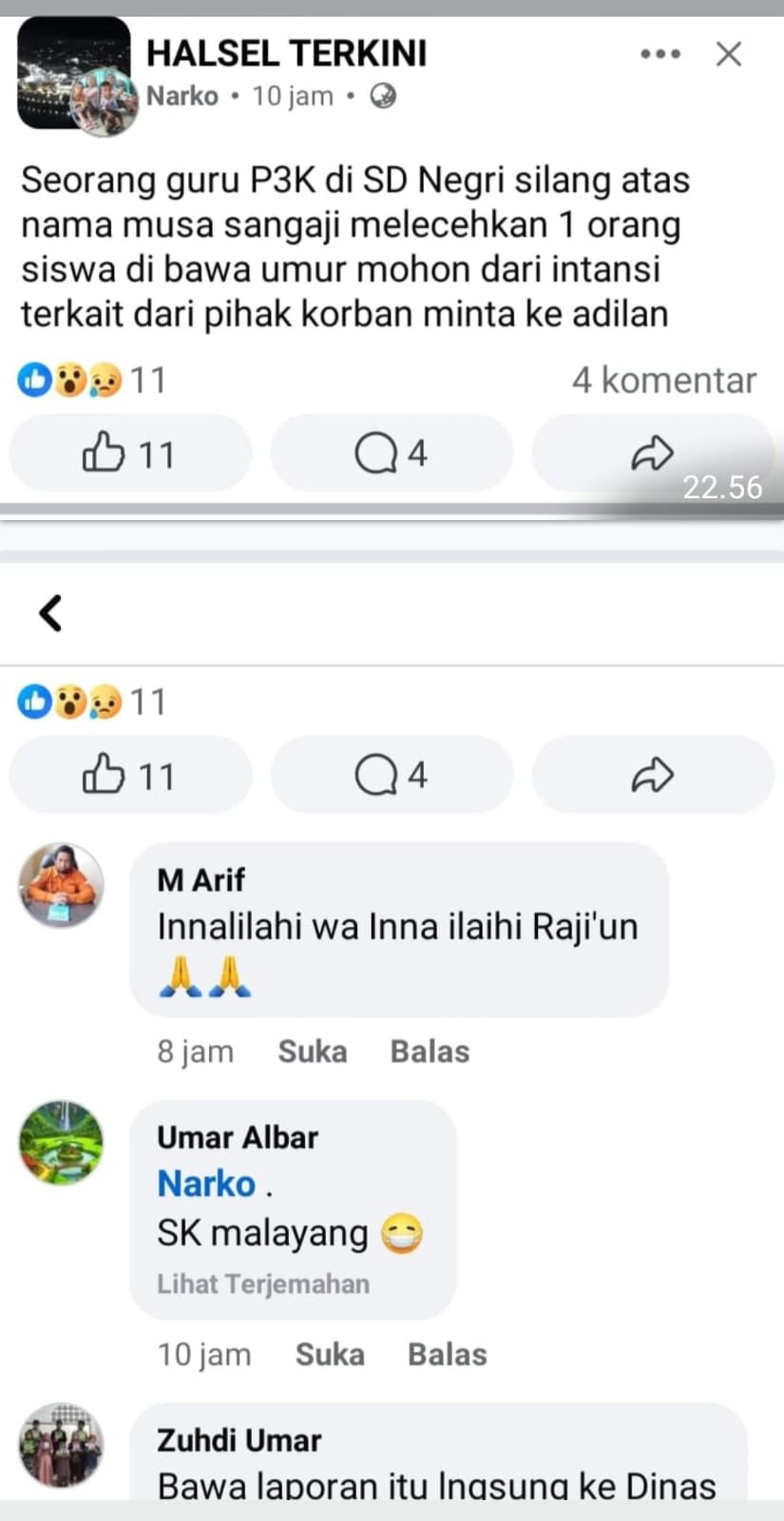 Kabar tersebut pertama kali muncul dari akun Facebook bernama Narko, yang menuliskan pernyataan mengejutkan: “Seorang guru P3K di SD Silang atas nama Musa Sangaji melecehkan 1 orang siswa di bawah umur. Mohon dari instansi terkait dari pihak korban minta keadilan.”