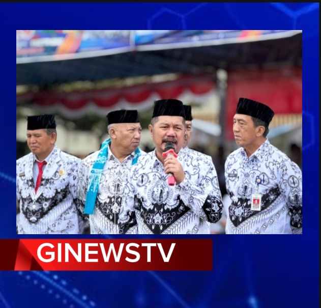 Kerinci ginewstvinvestigasiinews.com : Hujan yang tak kunjung reda sejak pagi membuat Lapangan Koto Periang basah dan licin, namun tidak menyurutkan semangat ribuan guru dari seluruh kabupaten/kota di Provinsi Jambi untuk mengikuti upacara peringatan Hari Ulang Tahun ke-80 PGRI dan Hari Guru Nasional (HGN), Senin (17/11/2025). Meski cuaca tak bersahabat, para peserta tetap berdiri tegak hingga rangkaian acara selesai.