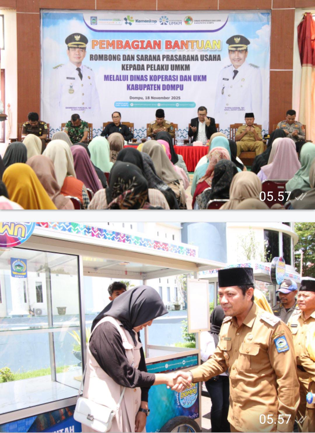 Pedagang kaki lima (PKL) sebagai pelaku usaha mikro kecil (UMK) yang terdampak operasi penertiban oleh Satuan Pol PP beberapa bulan lalu menerima bantuan rombong dari Bupati Dompu Bambang Firdaus SE. Kegiatan pemberian bantuan rombong secara simbolis tersebut berlangsung di Kantor Dinas Koperasi dan UMKM Kabupaten Dompu pada hari Selasa (18/11/25) sekitar pukul 10.30 Wita.