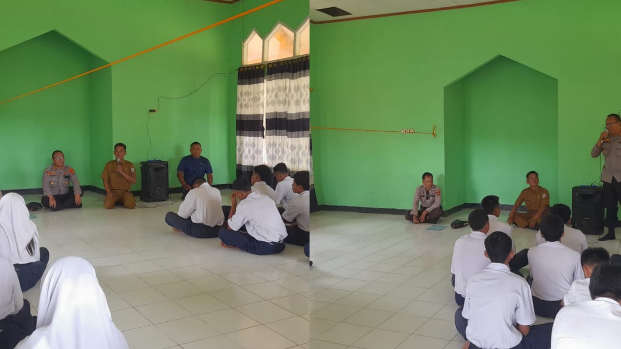 Polsek Gunung Labuhan Polres Way Kanan Polda Lampung gelar police goes to school di SMPN 5 Kampung Negeri Mulyo Kecamatan Gunung Labuhan Kabupaten Way Kanan. Selasa (18/11/2025).