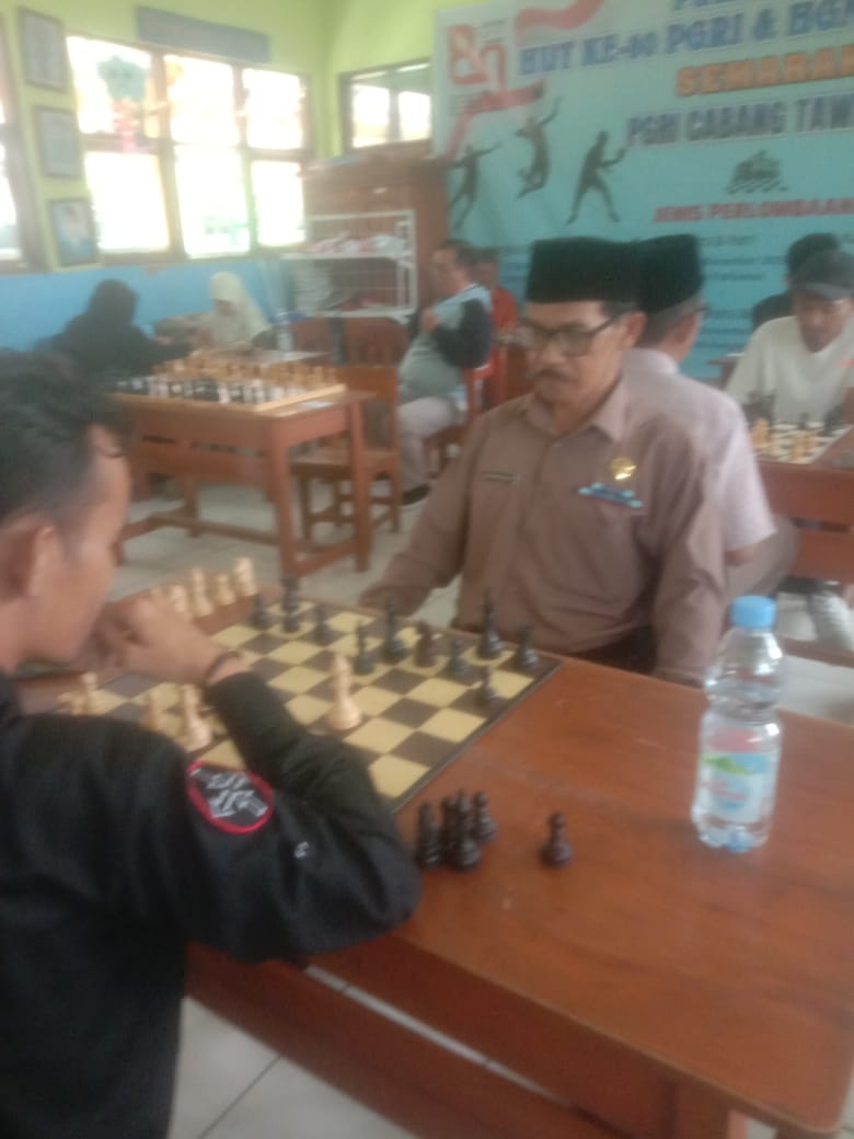 Ya dengan beberapa cabang Olahraga, Seni & Budaya juga permainan Catur nampak dalam gambar tokoh Wakasek Kesiswaan SMAN 1 vs Tokoh guru muda asal SMKN 2 begitu serius bertanding di semifinal.