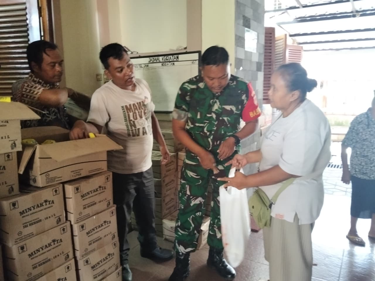 Surakarta – Babinsa Kelurahan Gandekan Koramil 04/Jebres, Kodim 0735/Surakarta Sertu Teguh K melaksanakan pendampingan pendistribusian beras dan minyak goreng dari Bulog bertempat di Pendopo Citra Duta Jl.Sungai Batanghari No. 23 Kel Gandekan Kec. Jebres Kota Surakarta, Selasa (25/11/2025)