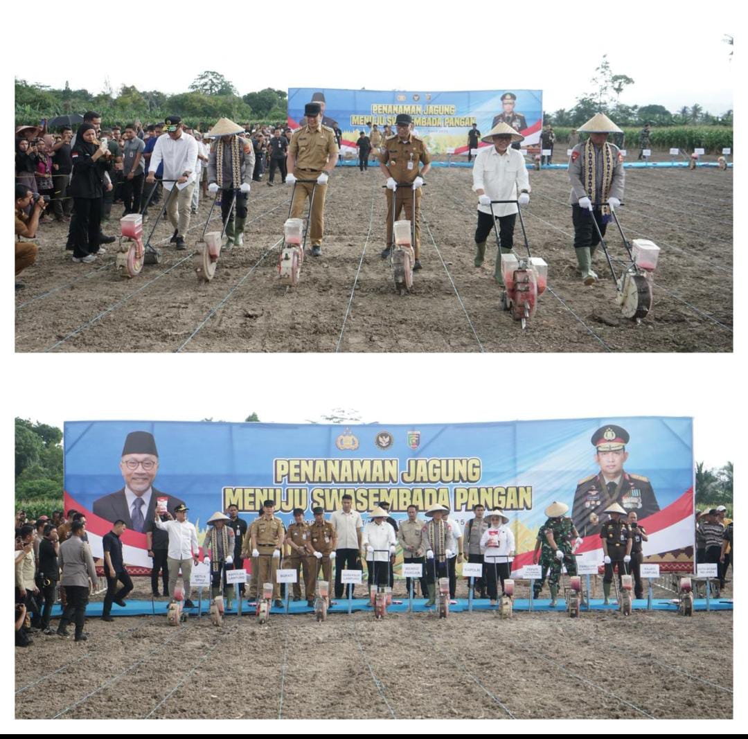 Wakapolri Komjen Dedi Prasetyo bersama Kapolda Lampung Irjen Helfi Assegaf menghadiri undangan Menteri Koordinator Bidang Pangan Zulkifli Hasan dalam kegiatan Penanaman Jagung Menuju Swasembada Pangan di Lampung Selatan, Selasa (2/12/2025).