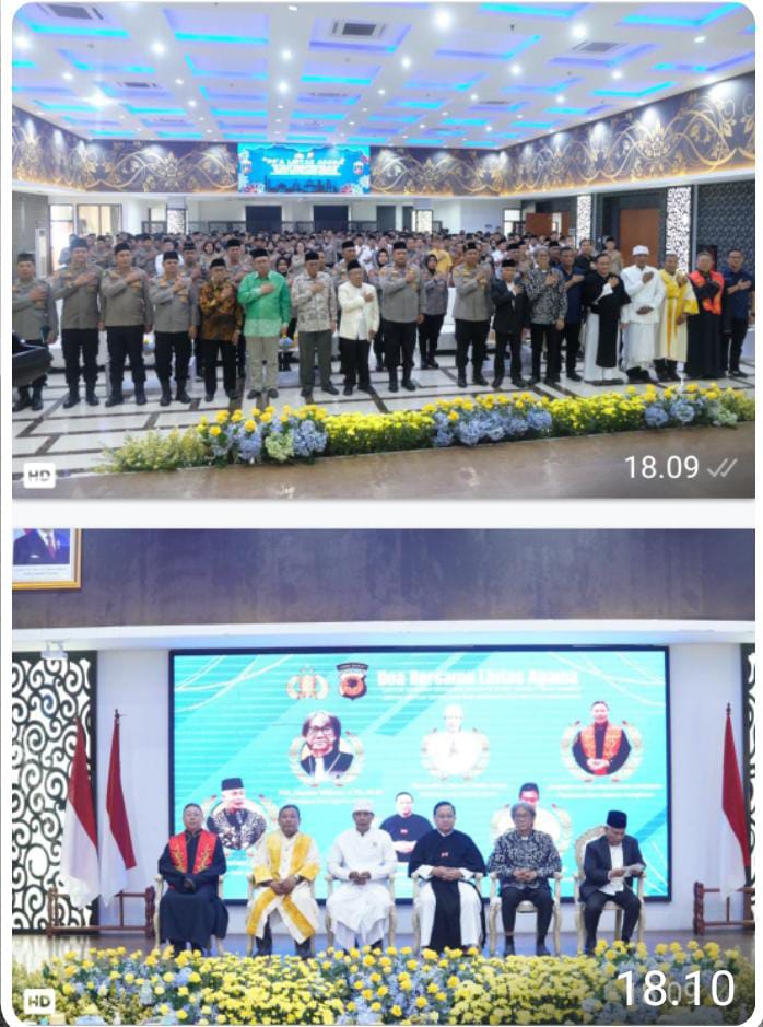 Kepolisian Daerah Jawa Barat (Polda Jabar) menyelenggarakan kegiatan Doa Bersama antar Lintas Agama sebagai wujud solidaritas dan kepedulian terhadap korban bencana alam di Aceh, Sumatera Utara (Sumut), dan Sumatera Barat (Sumbar), sekaligus memohon keselamatan bagi Bangsa dan Negara Indonesia. Acara ini bertempat di Aula Ditlantas Polda Jabar serta dibuka oleh Kapolda Jabar Irjen Pol. Rudi Setiawan melalui Zoom Meeting Kamis (4/12/2025).