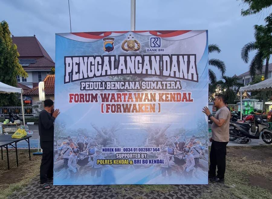 KENDAL – GLOBALNNESTIGASI GINEWS TV Deretan bencana alam yang melanda beberapa provinsi di wilayah Sumatra dan Aceh menggugah empati masyarakat Kendal. Berbagai komunitas turun tangan melakukan penggalangan donasi, termasuk Forum Wartawan Kendal (Forwaken) yang berkolaborasi dengan Polres Kendal dan Bank BRI sebagai mitra yang memfasilitasi penyaluran donasi resmi.