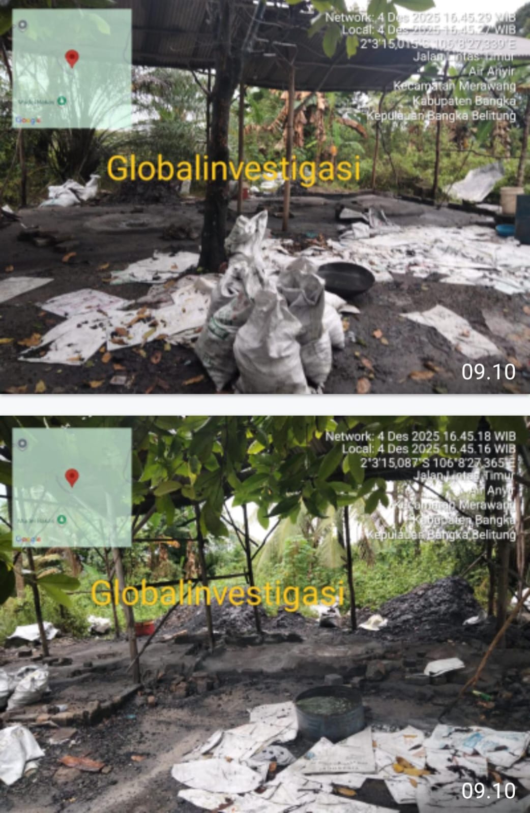 Ditemukan dua titik  lokasi yang diduga sebagai  tempat proses peleburan dan percetakan timah balok ilegal di Desa Mudel, Kecamatan Merawang, Kabupaten Bangka,Jumat ( 5/12/2025 )