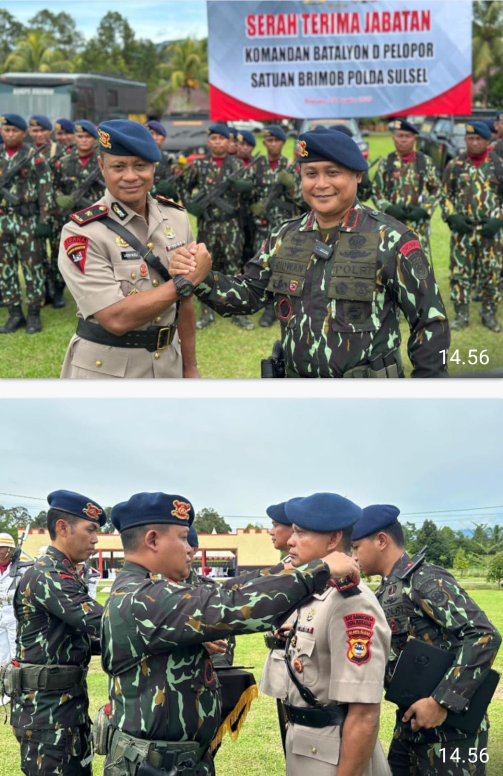 MAKASSAR — Satuan Brimob Polda Sulsel melaksanakan upacara Serah Terima Jabatan (Sertijab) Komandan Batalyon (Danyon) D Pelopor, di Mako Yon D, Kabupaten Luwu Utara, Jumat (5 Desember 2025).