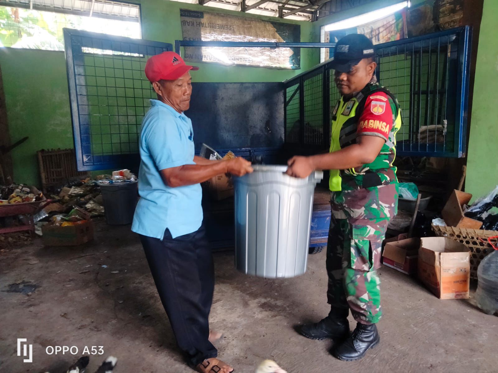 Surakarta – Tempat Pengolahan Sampah Berbasis Reduce, Reuse, dan Recycle ( TPS3R ) Mojo, desa Jebres terus mendapat perhatian dari Bati Tuud Koramil 04/Jebres Peltu Edi Yanto dan Babinsa Jebres Serda Winarno.