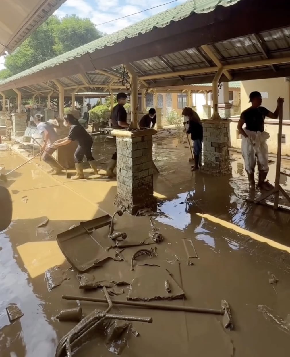 Dalam video tersebut, relawan dari berbagai lapisan masyarakat bekerja sama bersama personel TNI membersihkan sisa-sisa lumpur dan air banjir, baik di dalam maupun di luar area rumah sakit.
