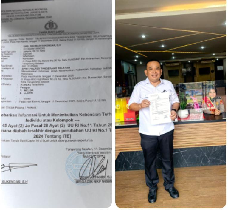 Ia memastikan dengan adanya Laporan Polisi Nomor : LP. TBL. 3007/ XII/2025/SPKT Polres Tangerang Selatan, tanggal 11 Desember 2025