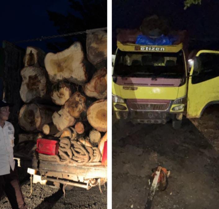 Dilokasi tersebut juga diamankan barang bukti berupa satu unit mobil truck colt diesel warna merah kuning tanpa nopol yang bermuatan kayu hasil curian sebanyak 20 gelondong dan mesin senso (alat pemotong kayu bertenaga mesin ).