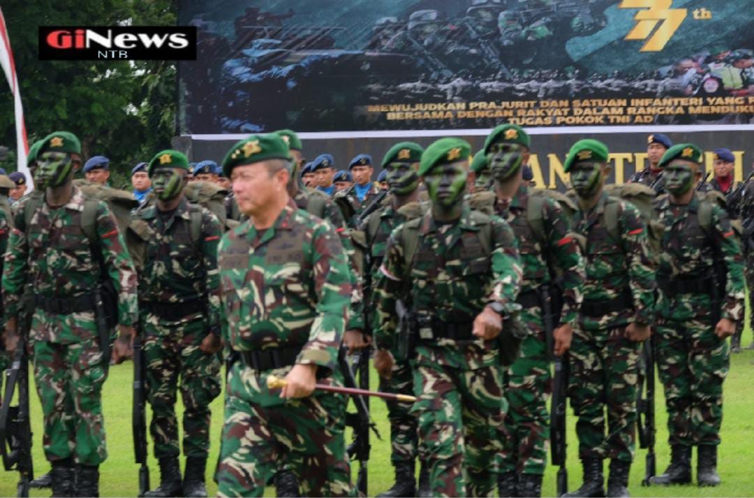MATARAM, NTB Globalinvestigasinews Com — Upacara Peringatan Hari Juang Infanteri ke-77 Tahun 2025 digelar dengan khidmat di Lapangan Trisula Yonif 742/Satya Wira Yudha, Jalan Sapta Marga, Asrama Gebang, Kelurahan Sapta Marga, Kecamatan Cakranegara, Kota Mataram, Jumat (19/12/2025). Upacara yang mengusung tema “Mewujudkan Prajurit dan Satuan Infanteri yang Prima Bersama dengan Rakyat dalam Rangka Mendukung Tugas Pokok TNI AD” ini dipimpin langsung oleh Pangdam IX/Udayana Mayjen TNI Piek Budyakto selaku Inspektur Upacara, dengan Komandan Upacara Danyonif 742/SWY Letkol Inf Yugi Prastawa, S.I.P., M.I.P., serta diikuti sekitar 500 peserta upacara.