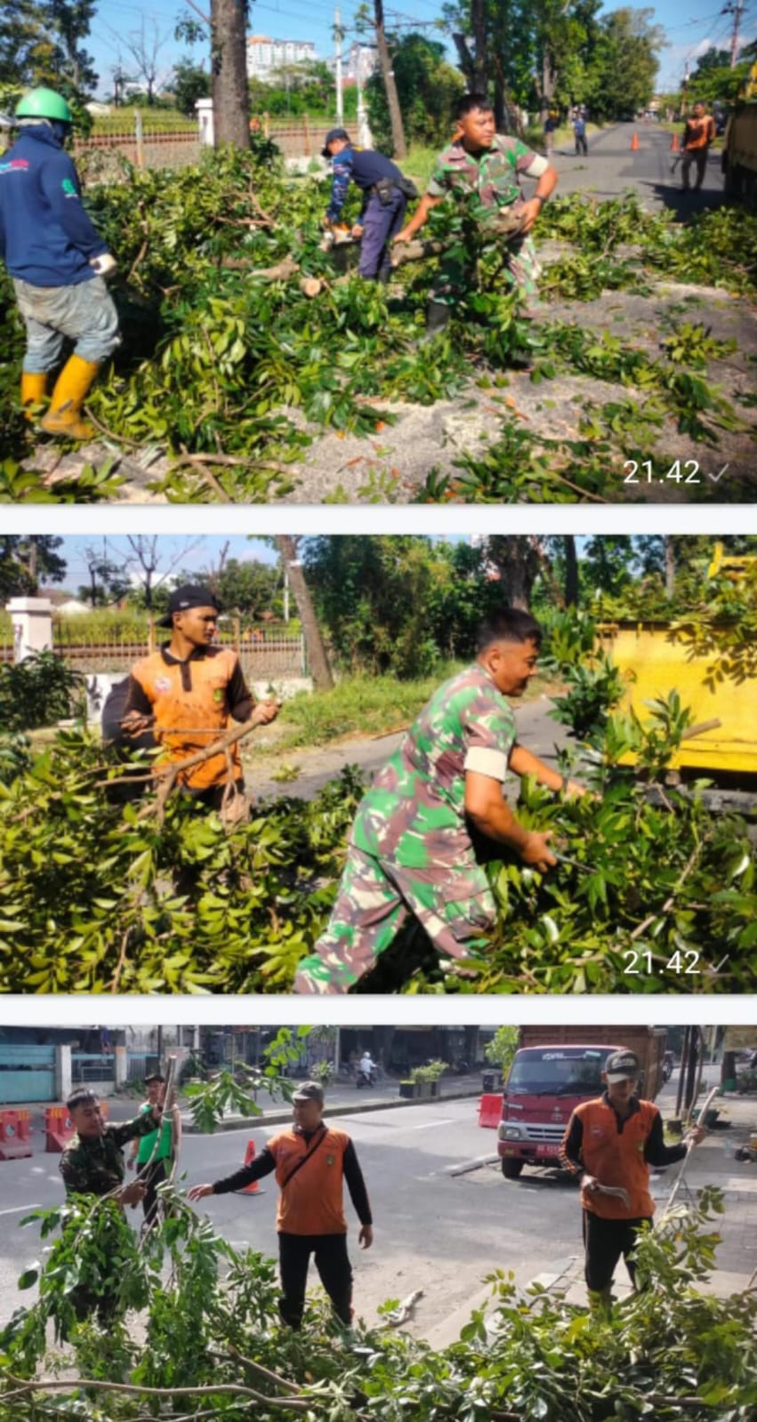 Sertu Mujono menegaskan kerja bakti bersama perempelan pohon di Jl. kolonel Sugiyono, Sekip Kelurahan Banjarsari Kecamatan Banjarsari Kota Surakarta diikuti oleh Berbagai elemen masyarakat, Dinas Lingkungan Hidup (DLH) Kota Surakarta, serta warga masyarakat sekitar.