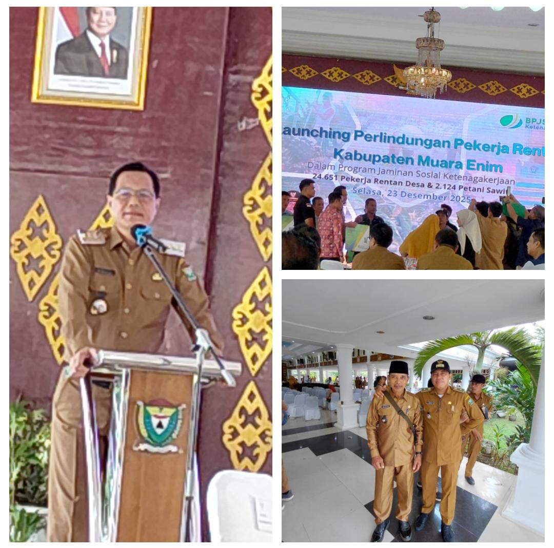 Muara Enim – Kepala Desa Sumber Mulya, Kecamatan Lubai Ulu, menghadiri kegiatan Launching Program Perlindungan Pekerja Rentan Desa yang diselenggarakan oleh Pemerintah Kabupaten Muara Enim. Program ini merupakan langkah strategis dalam meningkatkan jaminan sosial bagi masyarakat pekerja rentan yang terdampak kondisi ekonomi dan sosial.