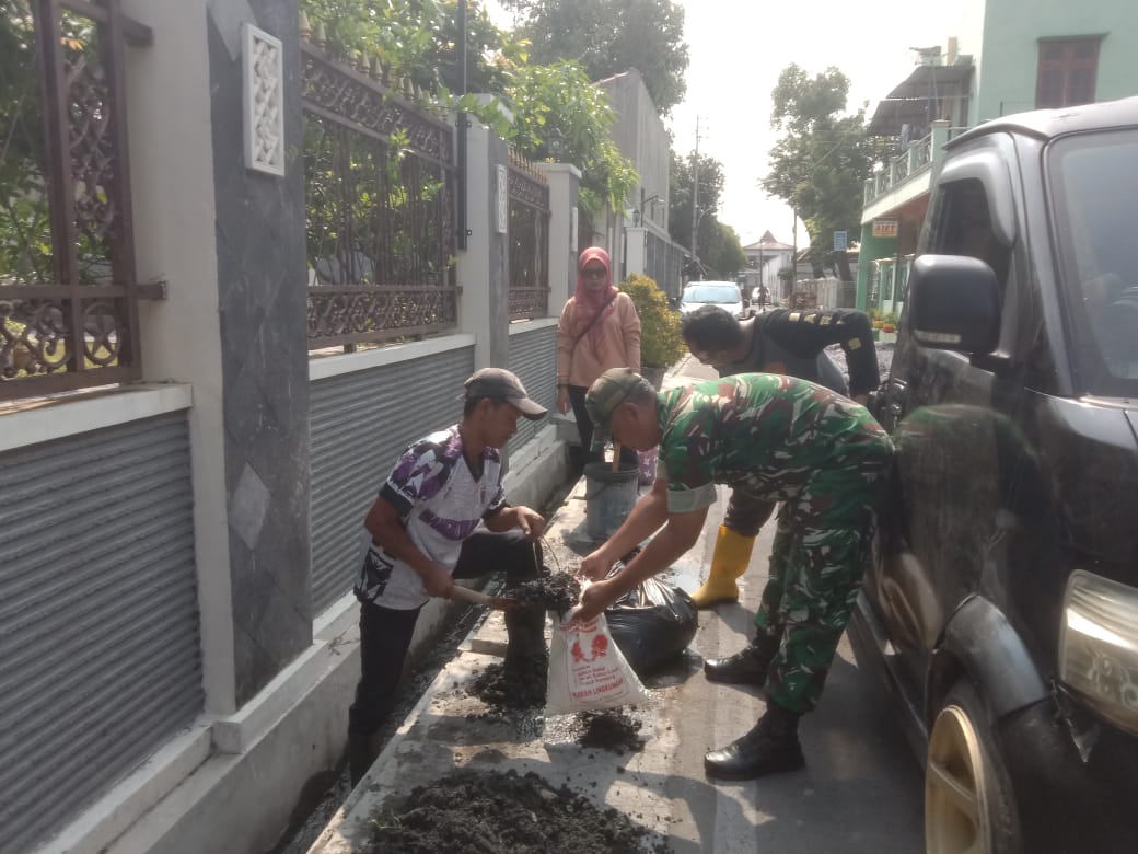 Surakarta – Bertempat di Wilayah RT 03 RW 06 kp Mangkubumen Kulon Kelurahan Mangkubumen kecamatan Banjarsari, Babinsa Kelurahan Mangkubumen Koramil 02/Banjarsari Kodim 0735/Surakarta Pelda Sujiianto bersama dengan warga masyarakat melaksanakan kegiatan kerja bakti pembersihan parit dan selokan, Senin (29/12/2025).