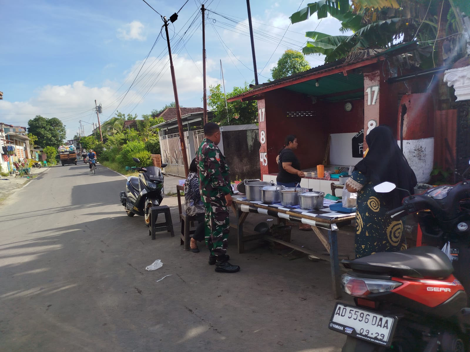 Surakarta – Babinsa Kelurahan Sewu Koramil 04/Jebres Kodim 0735/Surakarta Koptu Sanda Arieswanto menyambangi UMKM pedagang nasi liwet dan Bubur milik Ibu Metik di RT 02 RW 01 Kelurahan Sewu Kecamatan Jebres surakarta, Selasa, (30/12/2025).
