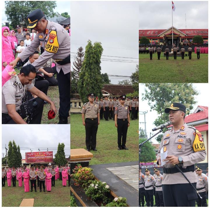 Sebanyak 66 personel Polres Way Kanan Polda Lampung dinaikan pangkat setingkat lebih tinggi pada acara Upacara Laporan Kenaikan Pangkat yang dipimpin oleh Kapolres Way Kanan AKBP Adanan Mangopang, di Mako Polres Way Kanan. Rabu (31/12/2025).