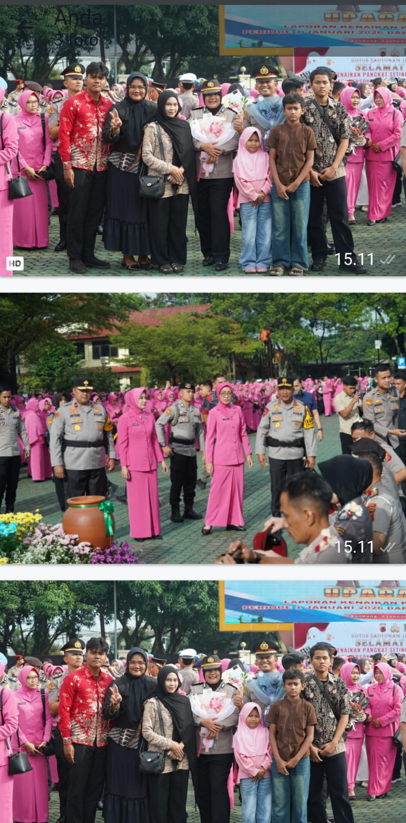 Momen kebersamaan antara personel dan keluarga seusai upacara menjadi gambaran nyata bahwa keberhasilan dalam karier kepolisian tidak lepas dari peran keluarga yang senantiasa memberikan doa, dukungan, dan pengorbanan.