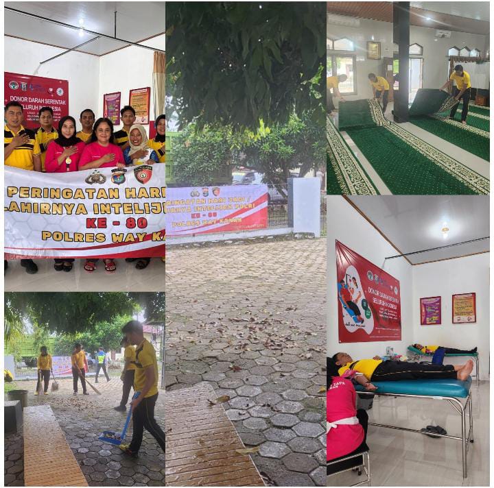 Kapolres Way Kanan AKBP Adanan Mangopang melalui Kasatintelkam AKP Mustholih menuturkan, bahwa dalam rangka peringatan hari jadi atau lahirnya Intelijen Polri ke-80 Polres Way Kanan, ini melaksanakan kegiatan bakti sosial religi diawali dengan membersihkan tempat ibadah.