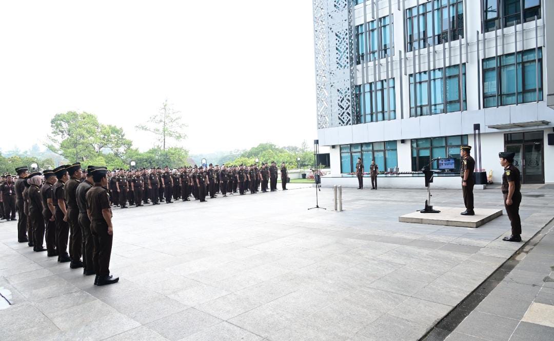 Wakil Kepala Kejaksaan Tinggi Jawa Barat Jabar Dr. Taufan Zakaria, S.H., M.H. bertindak sebagai Pembina upacara dalam Apel Gabungan Kejaksaan Tinggi Jawa Barat bersama Kejari se-jabar yang diselenggarakan di lapangan kantor Kejati Jabar dan daring melalui zoom meeting (05/01/25).