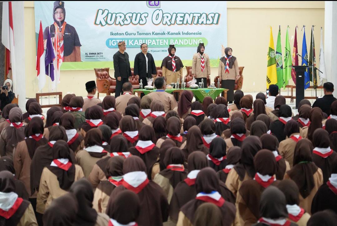 Kabupaten Bandung – Ketua Kwartir Cabang (Kwarcab) Gerakan Pramuka Kabupaten Bandung, Emma Dety Permanawati terus memperkuat komitmennya dalam pembangunan karakter anak usia dini. Hal ini diwujudkan melalui kegiatan Kursus Orientasi Pramuka bagi Kepala Taman Kanak-Kanak (TK) Se-Kabupaten Bandung di Gedung Dewi Sartika, pada Kamis (15/01/2026).