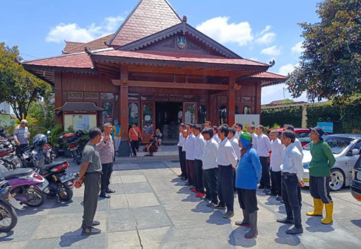Serka E lau we selaku Babinsa jagalan bersama Bhabinkamtibmas mengambil apel pagi dan memberikan materi PBB kepada saberling kelurahan jagalan”