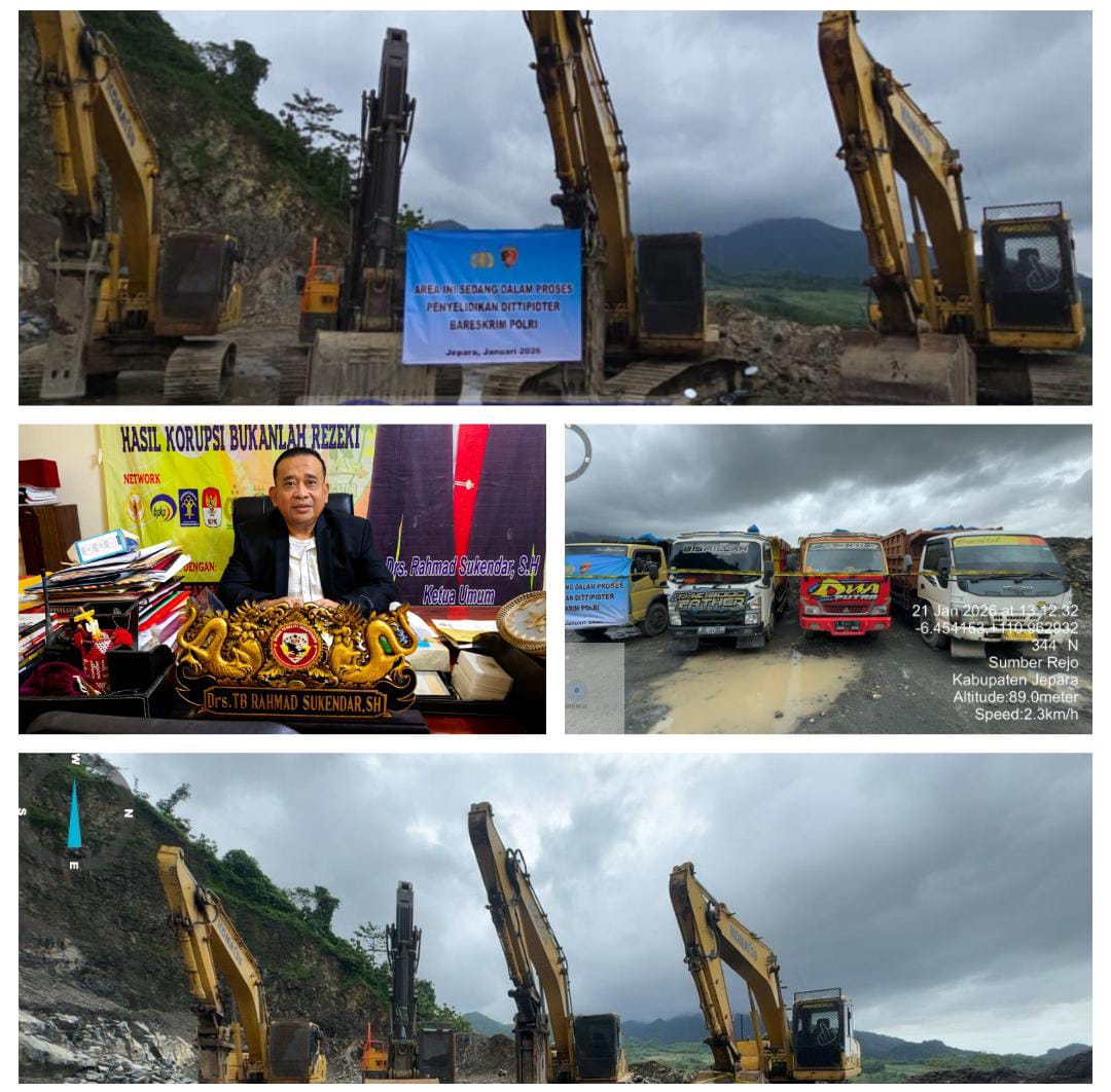 “Kami mengucapkan terima kasih kepada jajaran Dittipiter Bareskrim Polri yang sigap merespons laporan masyarakat terkait dampak bencana banjir di Kabupaten Jepara, yang diduga disebabkan oleh aktivitas tambang galian C. Tambang ilegal tidak hanya merusak lingkungan, tetapi juga merugikan negara serta mencemari air dan tanah di sekitar lokasi,” ujar Rahmad Sukendar di Kantor BPI KPNPA RI, Jalan Mawar, Tangerang Selatan, Rabu (21/1/2026).