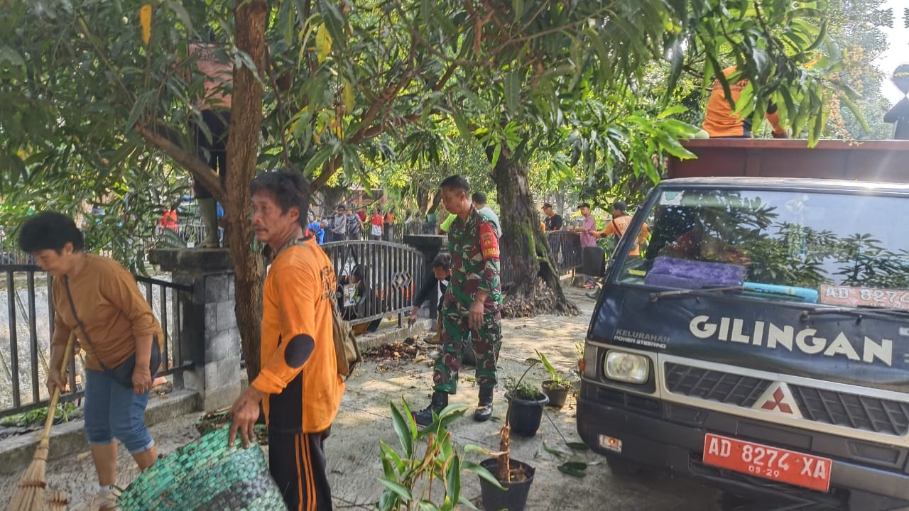 Surakarta – Babinsa Kelurahan Gilingan Koramil 02//Banjarsari Kodim 0735/Surakarta Serma Fajar dan Sertu Sandi melaksanakan kegiatan gotong royong pembersihan lingkungan bersama dengan warga masyarakat di wilayah binaan di Kampung Margorejo RT 05/RW 11 Kelurahan Gilingan Kecamatan Banjarsari, Sabtu (24/01/2026).
