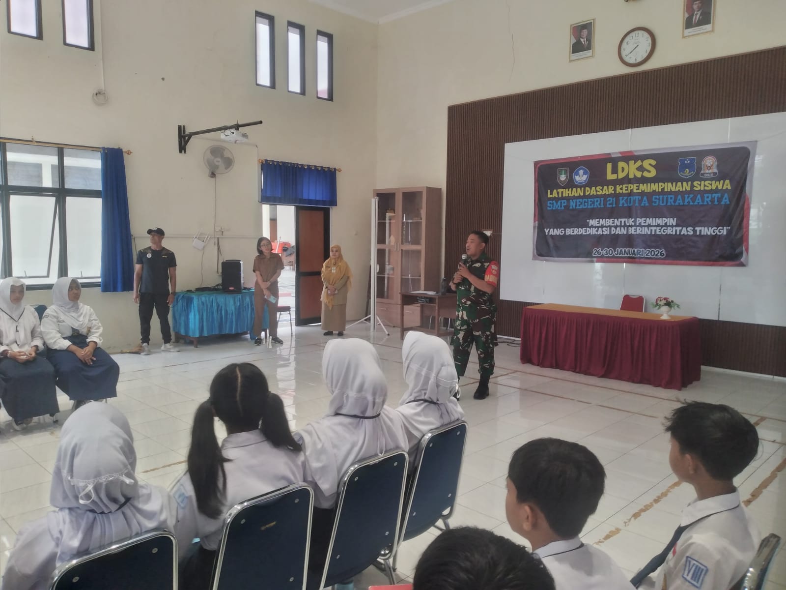 Kegiatan tersebut dilaksanakan pada Selasa (27/01/2026) bertempat di SMP Negeri 21 Surakarta dengan Materi LDKS yang diberikan oleh Babinsa Sewu Koptu Sanda Arieswanto, Anggota Koramil 04/Jebres.