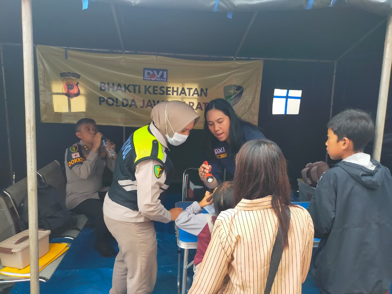 Dalam kegiatan bakti kesehatan tersebut, Polda Jabar menerjunkan tim medis untuk memberikan layanan pemeriksaan kesehatan gratis, pengobatan ringan, serta pemberian vitamin kepada warga terdampak, termasuk anak-anak dan lanjut usia. Pelayanan kesehatan dilakukan secara langsung di lokasi terdampak dan area pengungsian sementara.