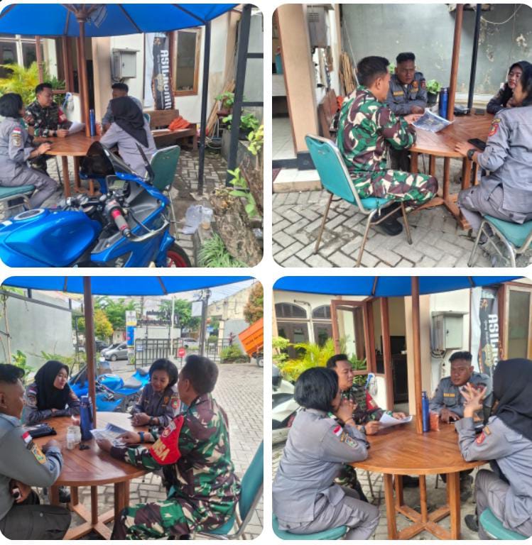Surakarta, Babinsa Danukusuman Koramil 03 Serengan Kodim 0735 Surakarta Serda Tito Bincang bincang dengan Linmas di Halaman Kelurahan Danukusuman Kecamatan Serengan Kota Surakarta, pukul 09.00 WIB Selasa (27/01/2026).