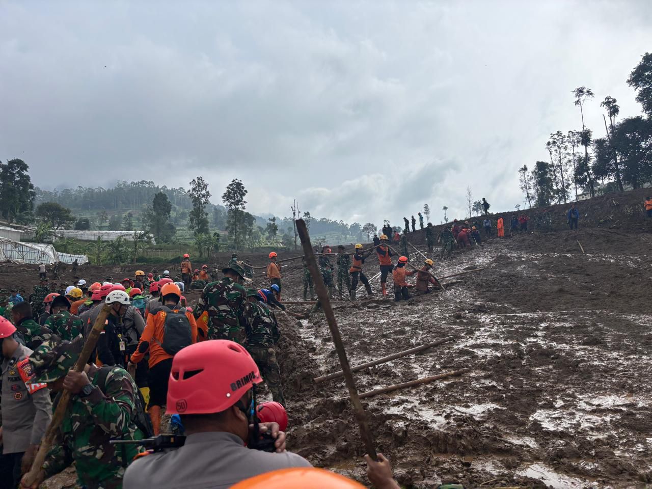 Kabid Humas Polda Jabar Kombes Pol Hendra Rochmawan S.I.K., M.H mengatakan bahwa Sejak pagi hari, personel Tim SAR gabungan melakukan pencarian korban di sejumlah titik rawan dengan tetap mengutamakan keselamatan mengingat kondisi tanah yang masih labil. Selain fokus pada evakuasi, Batalyon B Pelopor juga menurunkan Tim Dapur Lapangan untuk membantu memenuhi kebutuhan konsumsi korban bencana dan petugas di lapangan.