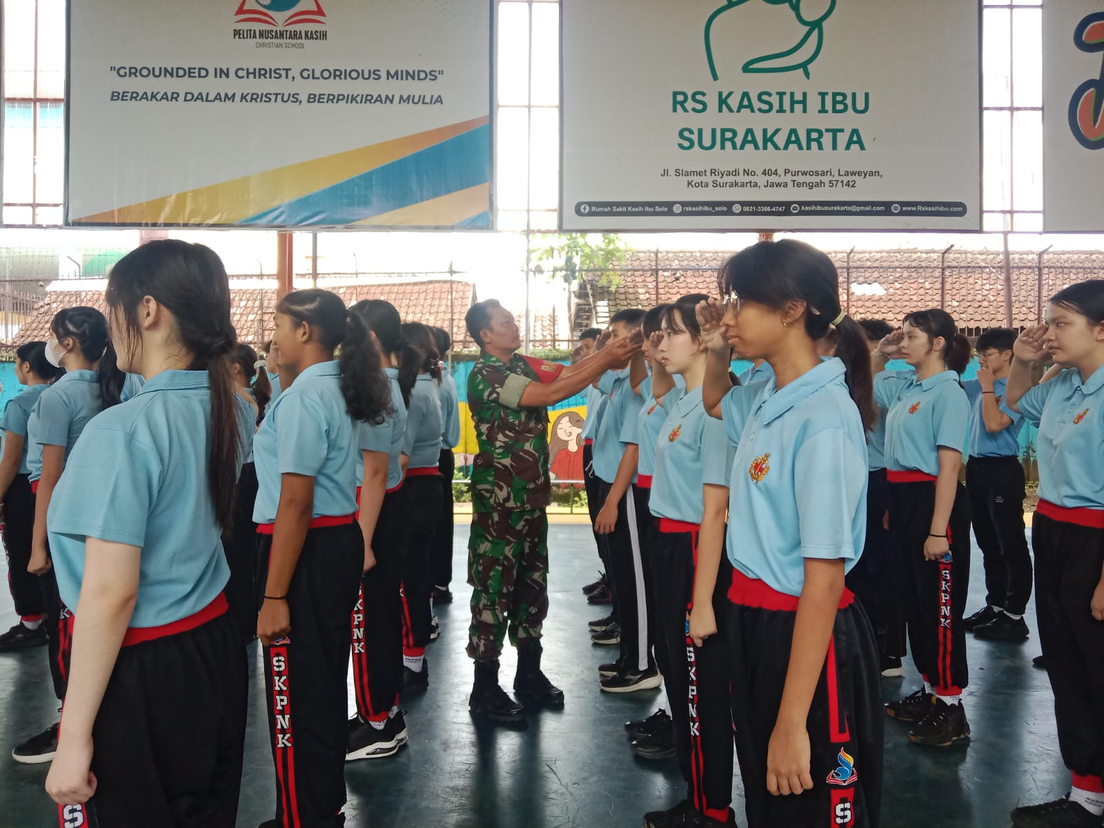 Surakarta – Babinsa Kelurahan Purwodiningratan Koramil 04/Jebres kodim 0735/ Surakarta Serka Suparno melatih Peraturan Baris Berbaris (PBB) untuk menanamkan disiplin, karakter, kekompakan, dan jiwa nasionalisme sejak dini Pelatihan ini mencakup gerakan dasar seperti sikap sempurna, hadap kanan/kiri, dan penghormatan, sekaligus sebagai pembinaan teritorial bertempat di SMA Pelita Nusantara kasih Nusantara jl Surya no 56 Kelurahan Purwodiningratan Jebres,Kamis (29/1/2026).