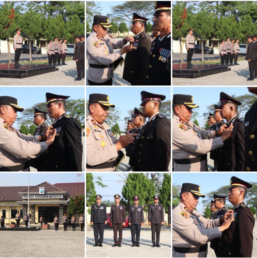 Kapolres Serdang Bedagai (Sergai) Sumut ,AKBP. Jhon Sitepu.SIK,MH.diwakili Waka Polres Sergai,Kompol.Dr.Rudy Candra .SH.MH,melaksanakan upacara pemberian Satya Lencana Polri kepada personel ditempat lapangan Apel Kapolres sergai (Sumut) ,Rabu 27/01/2025 pukul.08.00wib.