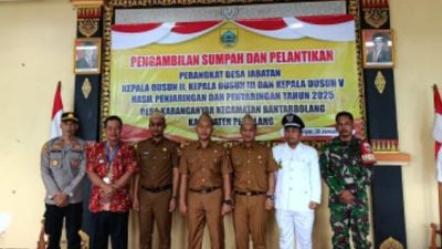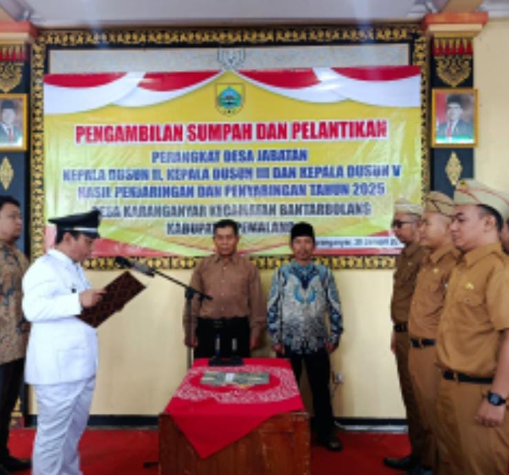 Pemalang Globalinvestigasinews.com – Pemerintah Desa Karanganyar, Kecamatan Bantarbolang, Kabupaten Pemalang, resmi melaksanakan pengambilan sumpah dan pelantikan perangkat desa hasil penjaringan dan penyaringan, yang digelar di Balai Desa Karanganyar. Acara berlangsung khidmat dan tertib dengan dihadiri oleh unsur Forkopimcam, Badan Permusyawaratan Desa (BPD), tokoh masyarakat, serta undangan lainnya, Jumat 30 Januari 2026.