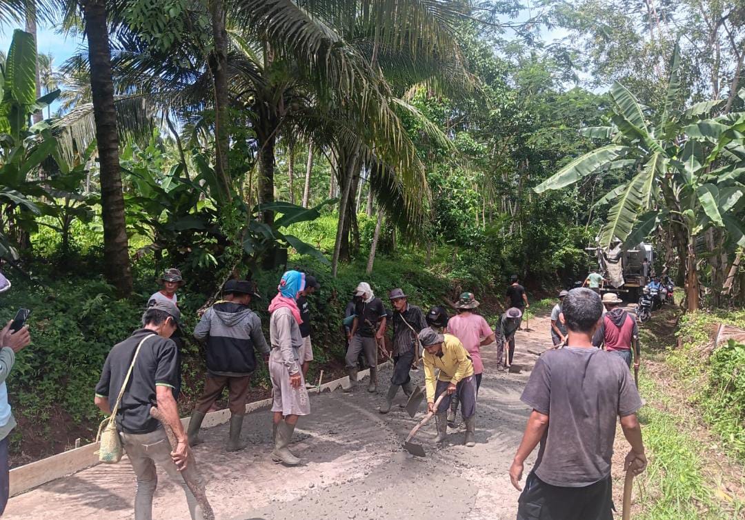 Masyarakat Kampung Cingagoler Kompak Bergotong Royong Pengecoran Jalan.