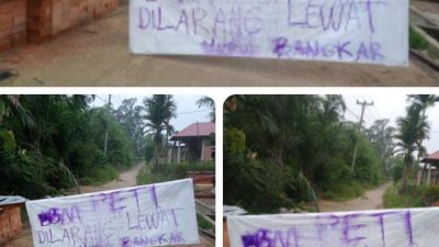 “Karena kondisi ini sudah sangat meresahkan, kami masyarakat sepakat untuk membuat palang jalan sebagai upaya menjaga jalan desa agar tidak semakin rusak,” ujarnya.