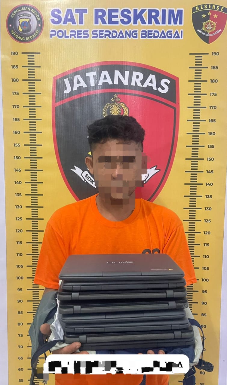 Sat Reskrim Polres Serdang Bedagai (Sergai) gerak cepat ,mengamankan seorang pria pelaku bobol Sekolah ,di tangkap dari rumanya dusun 2 kampung salam desa sei Bamban kecamatan Sri Bamban kabupaten Serdang Bedagai (Sergai) Sumut,Minggu 02/02/2026 sekitar pukul 21.30 wib.
